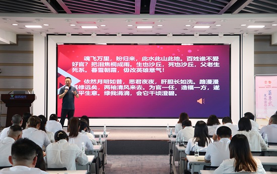 以時代為經(jīng)緯,以音樂為坐標。依托上海市經(jīng)信系統(tǒng)工會“經(jīng)信樂學(xué)”菜單式文化配送系列活動平臺,特別邀請到上海歌舞團男高音歌唱家、國家二級演員梁彬老師,以史串歌、以歌敘史,帶領(lǐng)黨員職工朗誦愛國主義詩歌《念奴嬌·追思焦裕祿》,追思焦裕祿同志對革命事業(yè)的熱愛和追求,欣賞民族歌劇《江姐》主題曲《紅梅贊》,在紅色的旋律中漫步時間長河,喚醒內(nèi)心深處的紅色記憶,與黨的偉大歷史對話,感悟真理的光芒,體會信仰的力量。