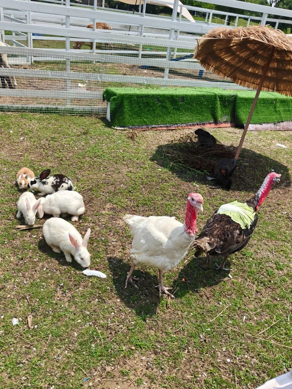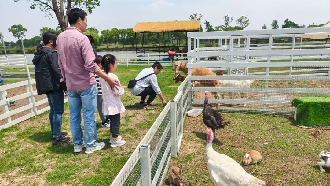露營區(qū)的草坪變成了歡樂的海洋,飛盤在空中劃出銀色的弧線,孩子們踮起腳尖跳躍接盤,草坪上的身影如小鹿般輕盈靈動;經(jīng)典游戲 "老鷹捉小雞" 里,"老鷹" 張牙舞爪地左突右沖,"母雞" 則張開雙臂緊緊護住身后的 "小雞",孩子們的尖叫與笑聲此起彼伏;"老狼老狼幾點了" 的稚嫩呼喊中,孩子們隨著 "老狼" 的回答一步步靠近,當(dāng)喊出 "開飯啦" 時,便像小火箭般四散奔跑,童真的快樂在追逐中無限蔓延。部分小朋友歡快地蹲在圍欄旁,輕輕將鮮嫩的青草遞給毛茸茸的小兔子,看它三瓣嘴快速咀嚼;又抓起玉米粒撒向火雞群,紅脖子的火雞撲棱著翅膀,咯咯叫著爭食。