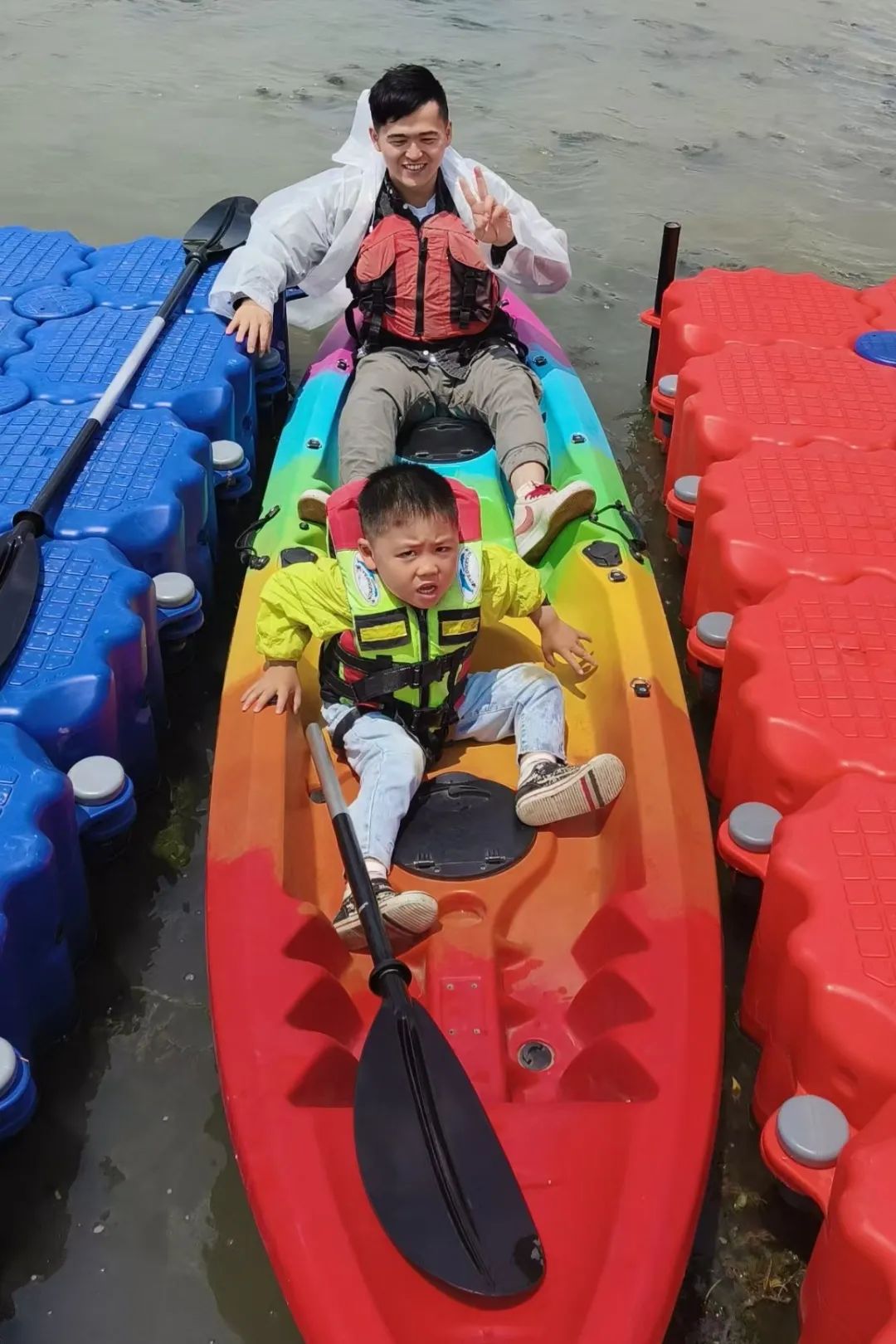 "小船長們,準(zhǔn)備啟航!"隨著教練一聲令下,彩色皮劃艇如彩虹魚一只只躍入湖面。孩子們乘坐著皮滑艇,像一群歡快的小鴨子,在家長的陪伴下盡情劃槳。微風(fēng)吹過湖面,小艇像陀螺般在水面打轉(zhuǎn),濺起的水花惹得岸上的家長笑彎了腰。