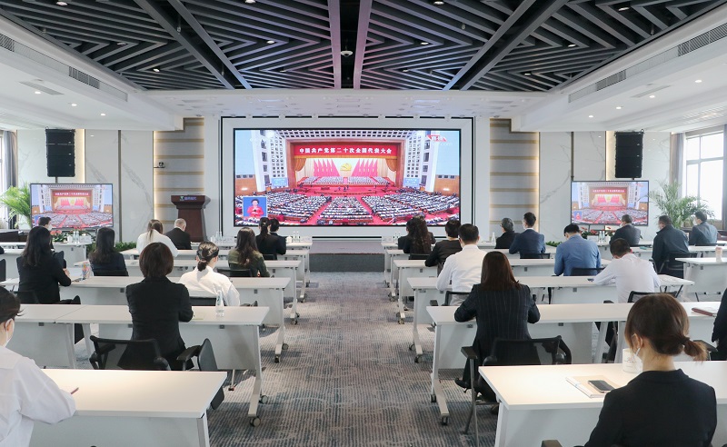 國藥現(xiàn)代黨政班子成員帶領(lǐng)國藥現(xiàn)代總部、研究院和浦東制造中心黨員干部職工在總部辦公樓集中觀看黨的二十大實(shí)況,各子企業(yè)分別在北京、新疆、青海、長春、河南、四川、山西、廣東、江蘇、上海等地組織職工集中觀看。