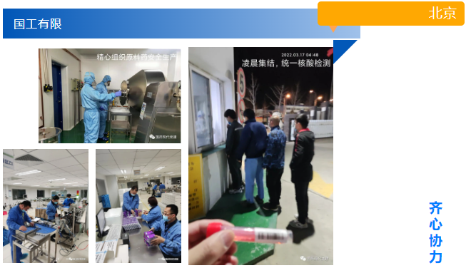 國工有限駐廠職工熱情無比高漲,每天既保證原料藥、制劑的生產(chǎn)進(jìn)度,又按時(shí)完成全員核酸檢測。由于廊坊市所有物流企業(yè)全部按下了暫停鍵,面對(duì)集采品種右美托咪定注射液發(fā)貨困難,黨員干部發(fā)揮先鋒模范作用,擔(dān)當(dāng)盡責(zé),一個(gè)電話接著一個(gè)電話地協(xié)調(diào),經(jīng)過不懈努力,最終緊急運(yùn)出300件貨品,避免了集采品種斷貨的風(fēng)險(xiǎn)。黨員干部職工的團(tuán)結(jié)、責(zé)任、擔(dān)當(dāng)體現(xiàn)的淋漓盡致