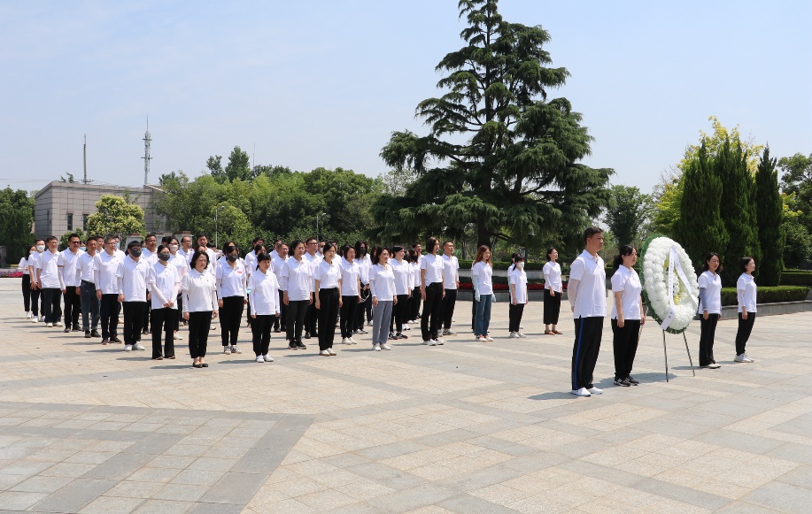 松柏蒼翠,豐碑矗立。松江烈士陵園中,瞻仰儀式在雄壯的中華人民共和國國歌聲中正式開始。在“死難烈士萬歲”紀念碑前,全體黨員和入黨積極分子整齊列隊、脫帽肅立,懷著無比崇敬和沉重的心情向長眠于此的173位英烈鞠躬默哀和敬獻花籃,向為民族獨立、人民解放而英勇犧牲的英烈們致以崇高的敬意和無限的哀思。