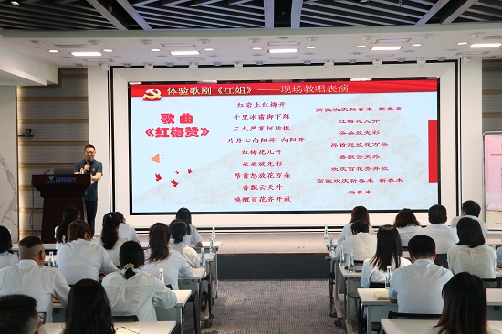 以時(shí)代為經(jīng)緯,以音樂(lè)為坐標(biāo)。依托上海市經(jīng)信系統(tǒng)工會(huì)“經(jīng)信樂(lè)學(xué)”菜單式文化配送系列活動(dòng)平臺(tái),特別邀請(qǐng)到上海歌舞團(tuán)男高音歌唱家、國(guó)家二級(jí)演員梁彬老師,以史串歌、以歌敘史,帶領(lǐng)黨員職工朗誦愛(ài)國(guó)主義詩(shī)歌《念奴嬌·追思焦裕祿》,追思焦裕祿同志對(duì)革命事業(yè)的熱愛(ài)和追求,欣賞民族歌劇《江姐》主題曲《紅梅贊》,在紅色的旋律中漫步時(shí)間長(zhǎng)河,喚醒內(nèi)心深處的紅色記憶,與黨的偉大歷史對(duì)話,感悟真理的光芒,體會(huì)信仰的力量。