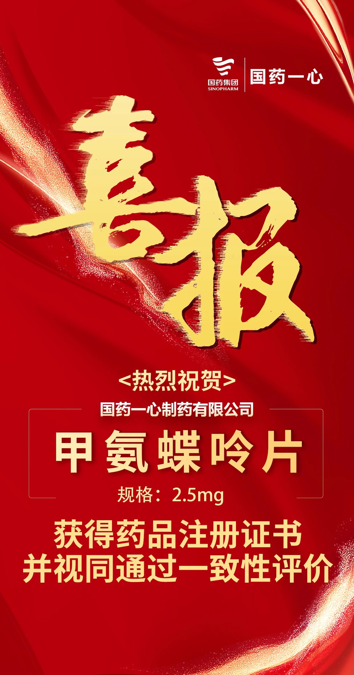 近日,子公司國藥一心收到國家藥品監(jiān)督管理局核準(zhǔn)簽發(fā)的《藥品注冊證書》,甲氨蝶呤片符合藥品注冊的有關(guān)要求,批準(zhǔn)注冊,發(fā)給藥品注冊證書。