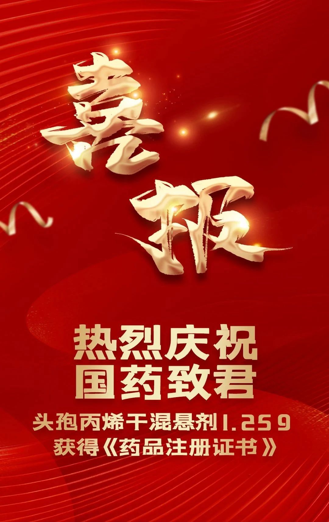 捷報(bào)頻傳,振奮人心。近日,子公司國藥致君收到國家藥品監(jiān)督管理局核準(zhǔn)簽發(fā)的頭孢地尼顆粒《藥品注冊證書》(化學(xué)藥品4類)和頭孢丙烯干混懸劑《藥品注冊證書》(化學(xué)藥品3類),兩款產(chǎn)品視同通過國家仿制藥質(zhì)量和療效—致性評價(jià)。