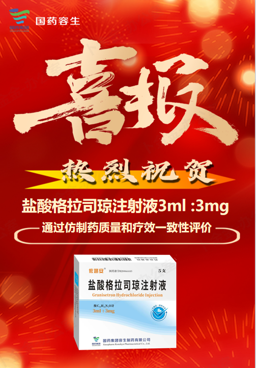 喜訊連連,碩果累累。近日,子公司國藥容生收到國家藥品監(jiān)督管理局核準簽發(fā)的《藥品補充申請批準通知書》,批準鹽酸格拉司瓊注射液(3ml:3mg)通過仿制藥質(zhì)量和療效一致性評價。