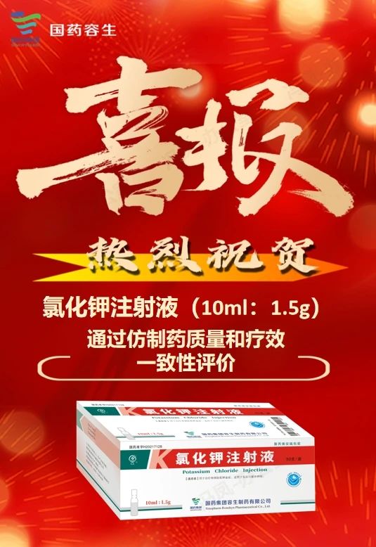 捷報(bào)頻傳,收獲滿滿。近日,子公司國藥容生收到國家藥品監(jiān)督管理局核準(zhǔn)簽發(fā)的《藥品補(bǔ)充申請(qǐng)批準(zhǔn)通知書》,批準(zhǔn)氯化鉀注射液(10ml:1.5g)通過仿制藥質(zhì)量和療效一致性評(píng)價(jià)。