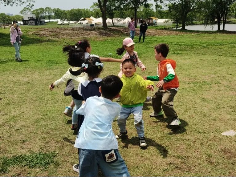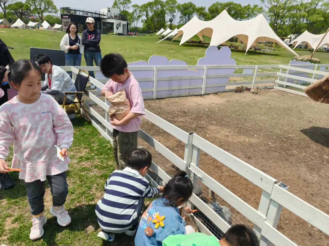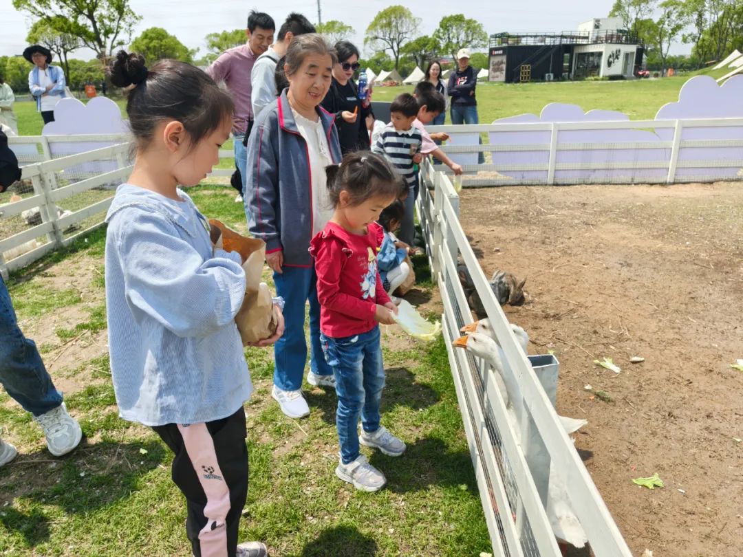 露營(yíng)區(qū)的草坪變成了歡樂的海洋,飛盤在空中劃出銀色的弧線,孩子們踮起腳尖跳躍接盤,草坪上的身影如小鹿般輕盈靈動(dòng);經(jīng)典游戲 "老鷹捉小雞" 里,"老鷹" 張牙舞爪地左突右沖,"母雞" 則張開雙臂緊緊護(hù)住身后的 "小雞",孩子們的尖叫與笑聲此起彼伏;"老狼老狼幾點(diǎn)了" 的稚嫩呼喊中,孩子們隨著 "老狼" 的回答一步步靠近,當(dāng)喊出 "開飯啦" 時(shí),便像小火箭般四散奔跑,童真的快樂在追逐中無限蔓延。部分小朋友歡快地蹲在圍欄旁,輕輕將鮮嫩的青草遞給毛茸茸的小兔子,看它三瓣嘴快速咀嚼;又抓起玉米粒撒向火雞群,紅脖子的火雞撲棱著翅膀,咯咯叫著爭(zhēng)食。
