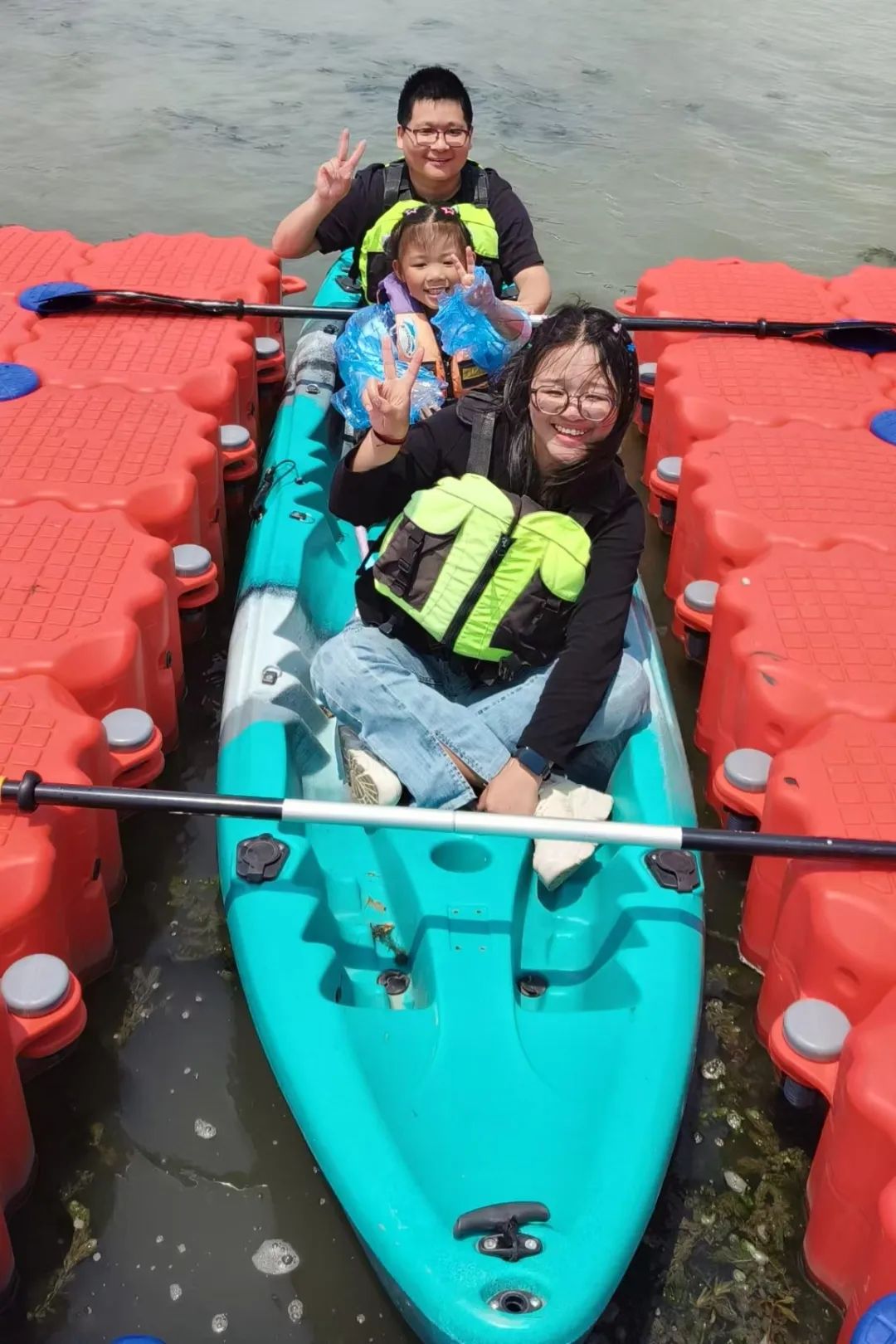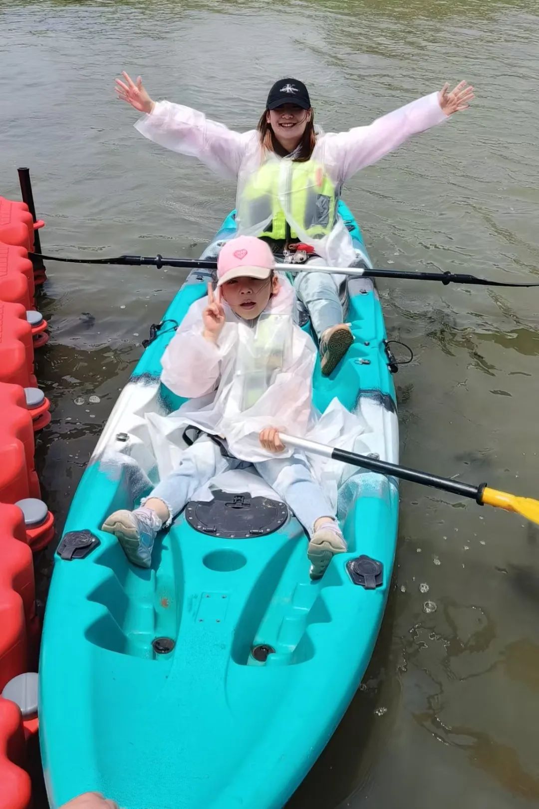 "小船長(zhǎng)們,準(zhǔn)備啟航!"隨著教練一聲令下,彩色皮劃艇如彩虹魚一只只躍入湖面。孩子們乘坐著皮滑艇,像一群歡快的小鴨子,在家長(zhǎng)的陪伴下盡情劃槳。微風(fēng)吹過湖面,小艇像陀螺般在水面打轉(zhuǎn),濺起的水花惹得岸上的家長(zhǎng)笑彎了腰。