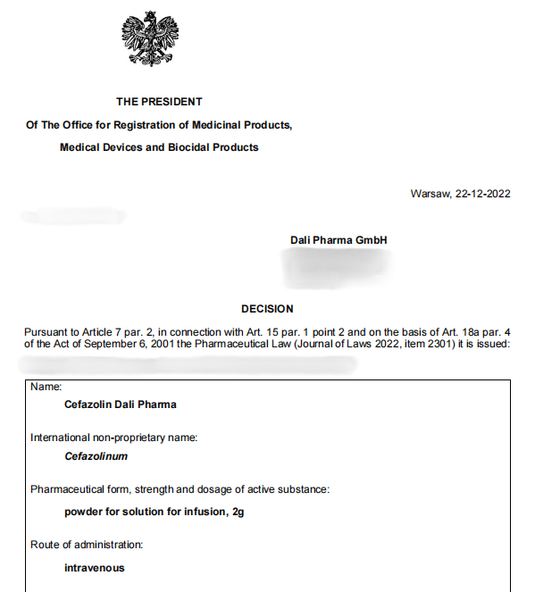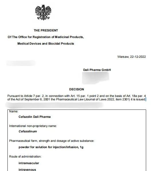 近日,國藥現(xiàn)代控股公司DALI Pharma GmbH(以下簡稱“DALI Pharma”)收到波蘭藥監(jiān)局藥品注冊辦公室核準(zhǔn)簽發(fā)的注射用頭孢唑林鈉(1g、2g)的上市許可。