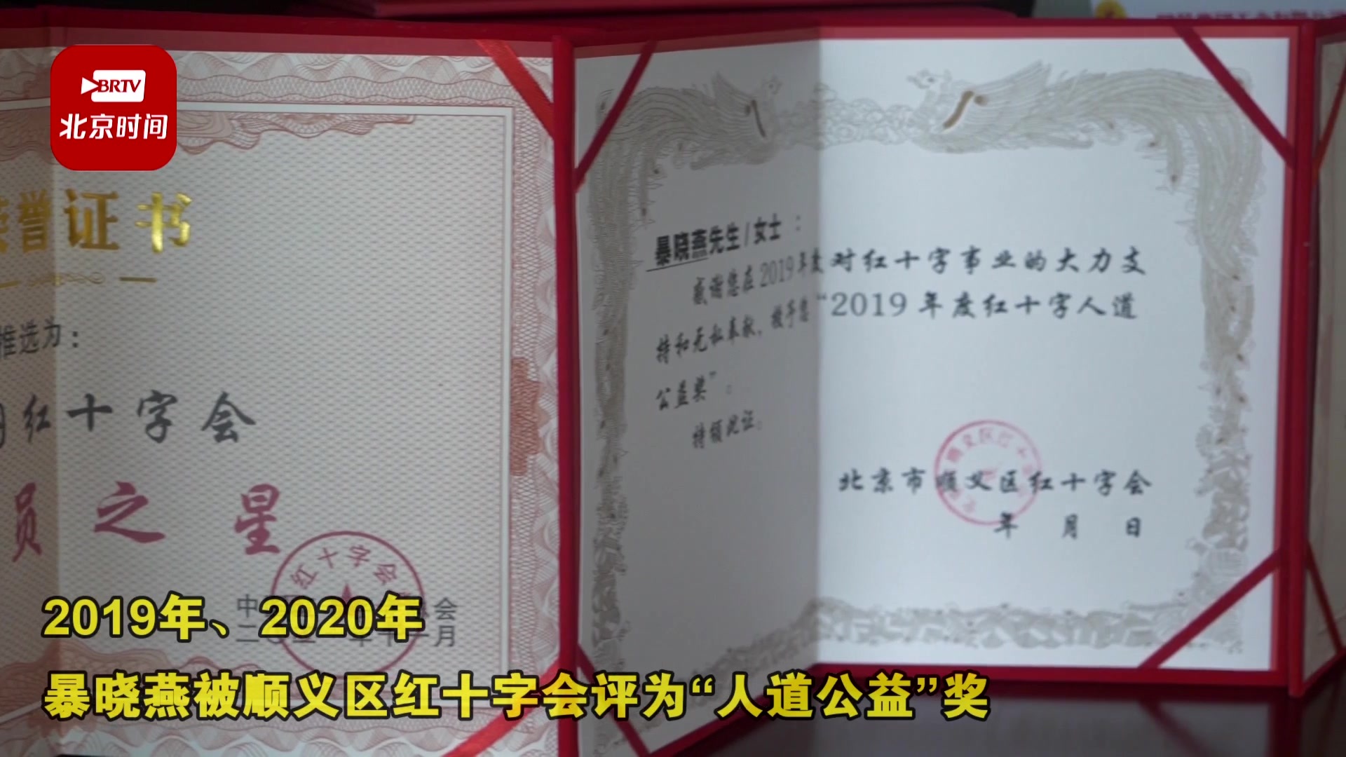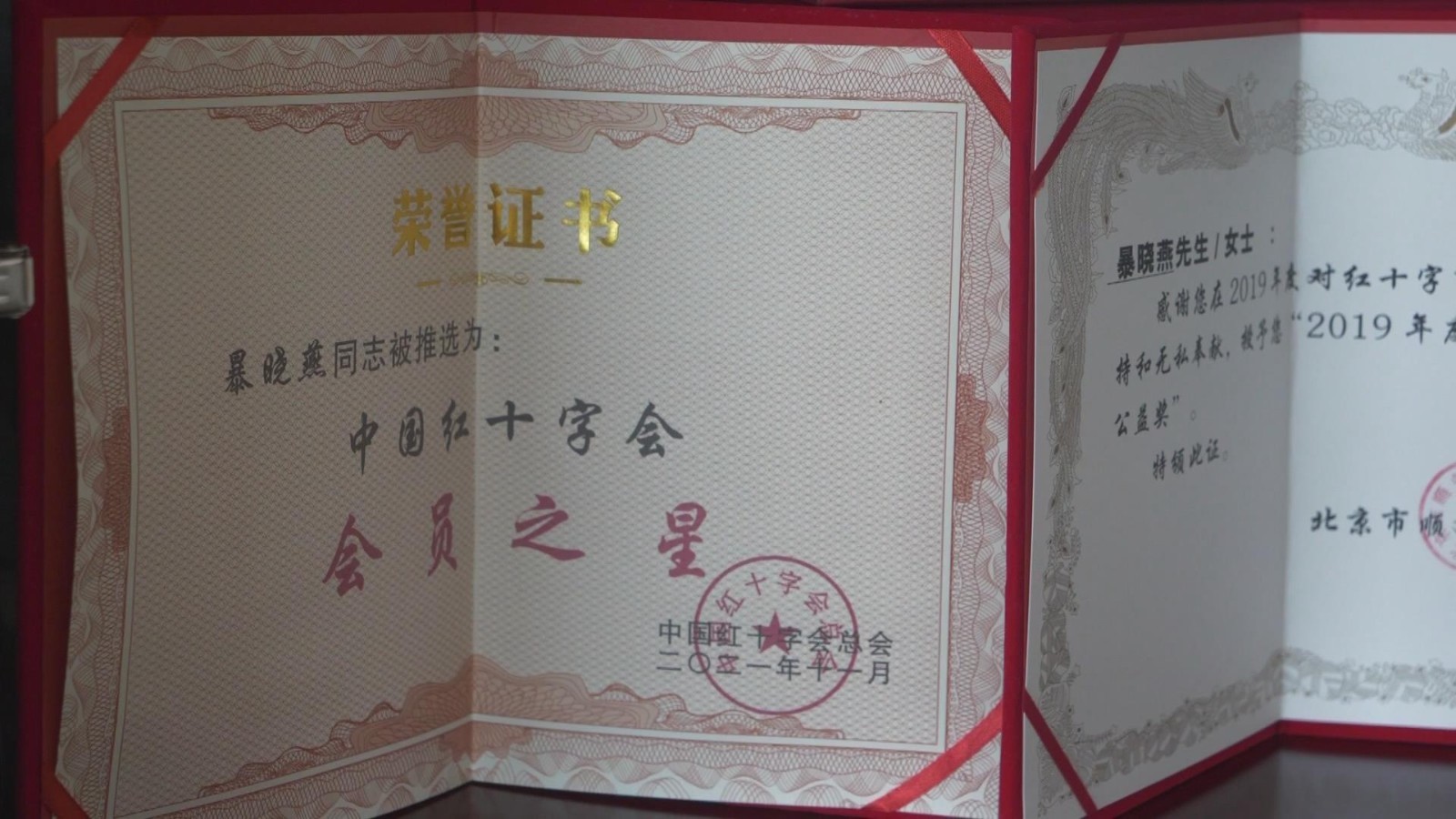 2019年、2020年暴曉燕被順義區(qū)紅十字會評為“人道公益”獎,2021年被中國紅十字會評為中國紅十字會“會員之星”榮譽稱號,2022年被北京市紅十字血液稀有血型愛心之家評為“奉獻獎”。