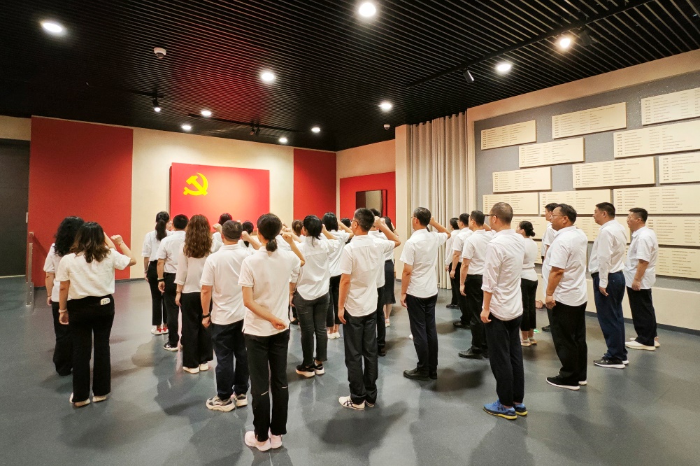 鐵軍鏗鏘,光輝永鑄。學員們聆聽了新四軍干部學院歷史研究室主任陳蓉教授《傳承新四軍革命精神 建設高素質(zhì)干部隊伍》的專題教學,走進新四軍紀念館感受一位位烈士的感人事跡,感悟到新四軍鐵的信仰、鐵的擔當、鐵的意志、鐵的紀律,用鮮血和生命為民族獨立、人民解放建立不朽光輝的偉大精神。全體學員懷著對革命先烈的崇敬之情,面向黨旗高舉右拳,鏗鏘有力地念出入黨誓詞,砥礪初心使命,汲取前行力量。