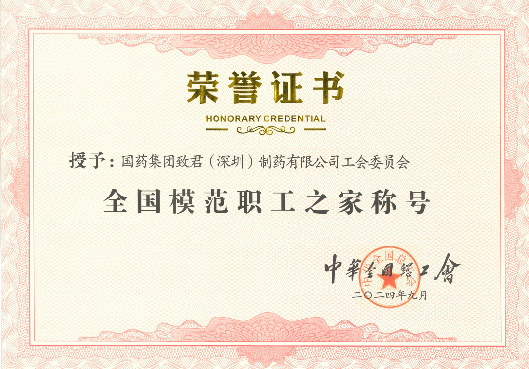 近日,中華全國總工會印發(fā)《表彰全國模范職工之家 全國模范職工小家 全國優(yōu)秀工會工作者的決定》,國藥致君工會榮獲“全國模范職工之家”稱號。