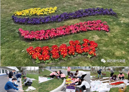 在國藥現(xiàn)代總部辦公區(qū)域草坪內(nèi),開展景觀花壇栽種義務(wù)勞動。團員青年以鮮花為筆、草地為紙,畫出色彩絢麗的國藥集團“關(guān)愛生命·呵護健康”的品牌LOGO,繪就出一道靚麗的綠色風景線,給景觀花壇增添了勃勃生機,彰顯國藥現(xiàn)代企業(yè)文化。