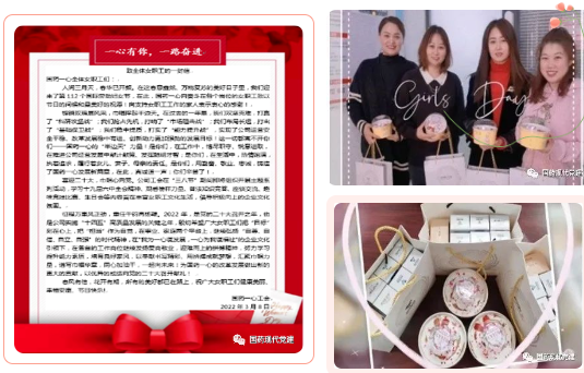 國藥一心工會開展了“喜迎二十大?巾幗心向黨”三八婦女節(jié)系列活動,為全體女職工送上暖心的問候信、精美的禮物、定制的蛋糕,表達著對女職工的關(guān)愛和美好的祝愿,通過公眾號、微信群、宣傳欄等平臺開展《婦女權(quán)益保障法》、防疫防控知識等宣傳及網(wǎng)絡(luò)答題活動,營造關(guān)心關(guān)注女職工權(quán)益的良好氛圍。